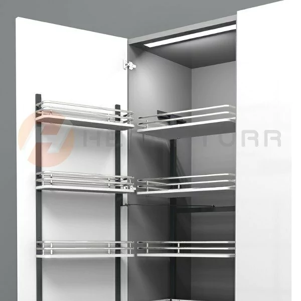 Se compone por 6 bandejas interiores con una carga maxima permitida de 25 kilos en total y un grupo de 6 bandejas sobre la puerta con un peso maximo permitido de 15 kilos.