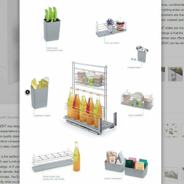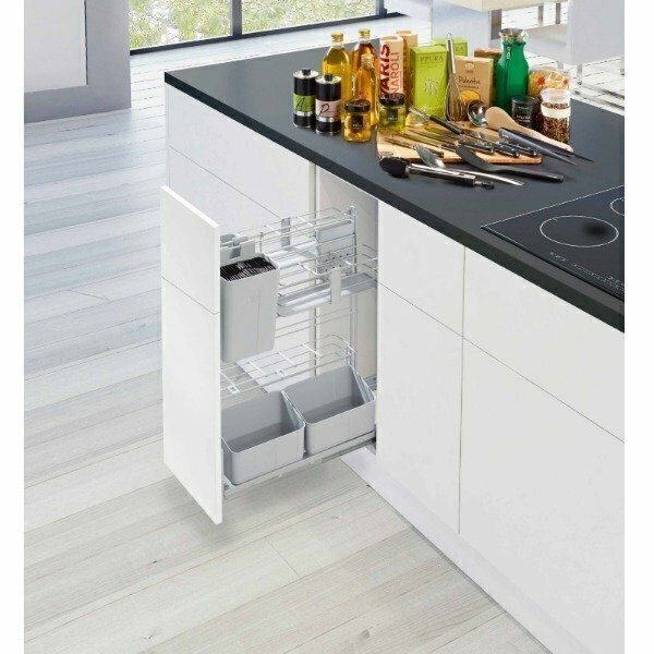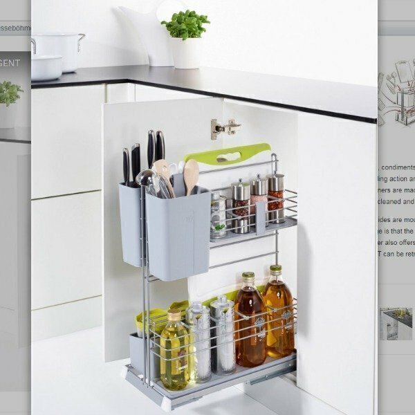Ideal para aplicar en puertas frontales de extracción manual. Multi usos con soporte para cuchillos, bolsas, bateas de almacenamiento y cubetas de organización. Herraje de gran capacidad.