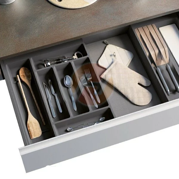 Dotado de una aleta lateral en uno de los lados que permite su perfecta colocación contra un lateral de cajón de paredes rectas manteniéndose estable.