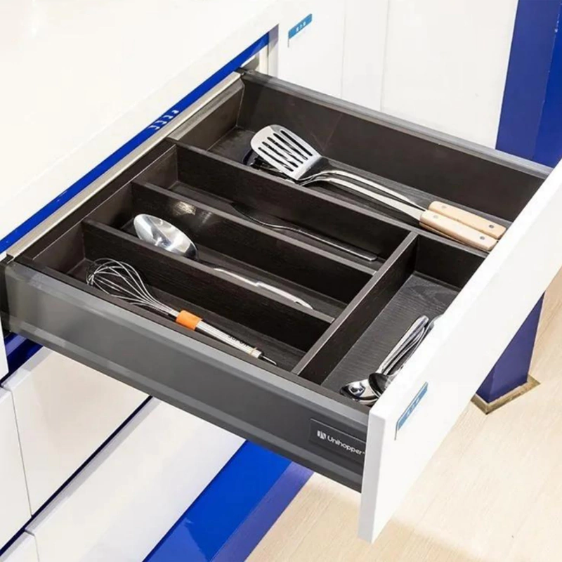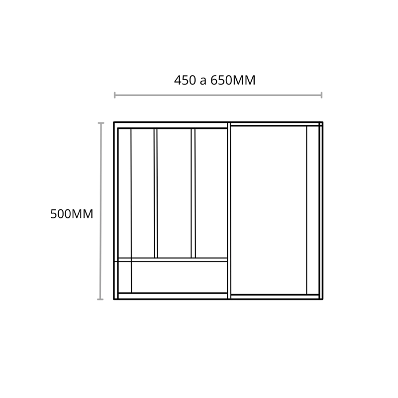 Presenta vetas en sentido vertical y 4 divisiones más un modulo extensible para ampliar la capacidad o ajustar al ancho total.