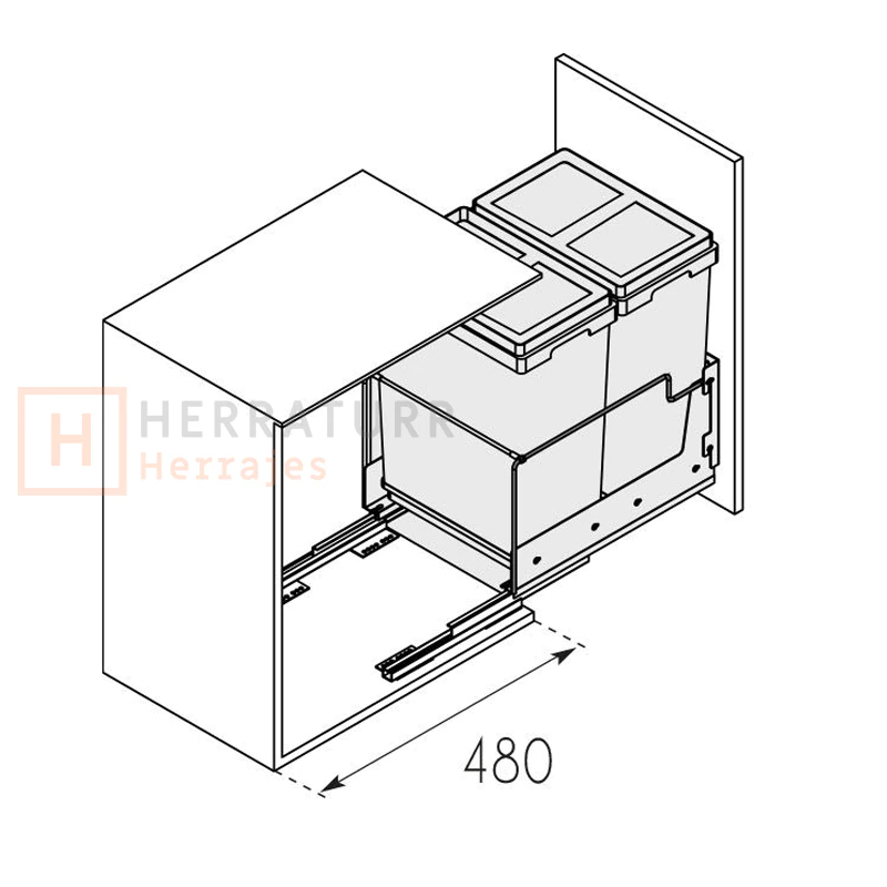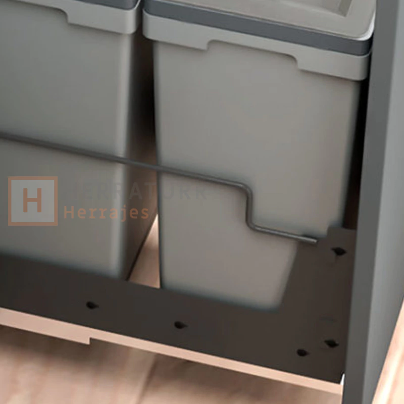 Incluye 2 cestos de 27 litros de color gris, extraibles, con tapa individual.